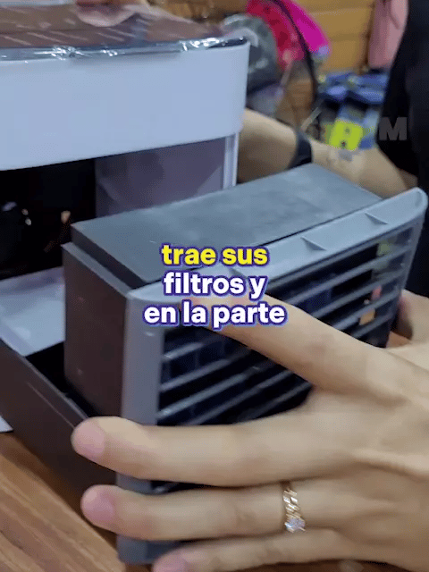 ¡Refresca al instante tus rincones favoritos! Este mini aire acondicionado por evaporación usa agua o hielo para lanzar una brisa fresca y agradable, ideal para el escritorio, mesa de noche o cocina. Conéctalo por USB, ajusta la dirección del flujo y olvídate del calor sin ruido ni consumo alto.